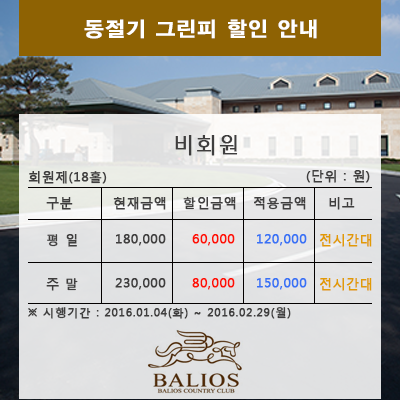 2016년 (동절기)그린피 할인 안내