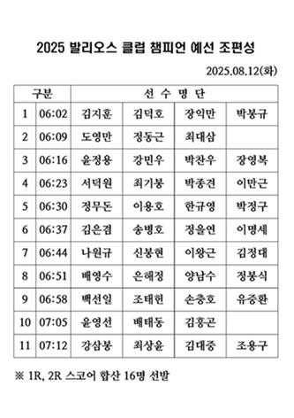 2025발리오스클럽 챔피언 예선 조편성