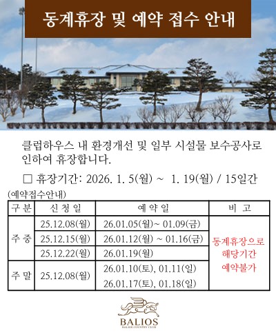 동계휴장 및 예약 접수 안내