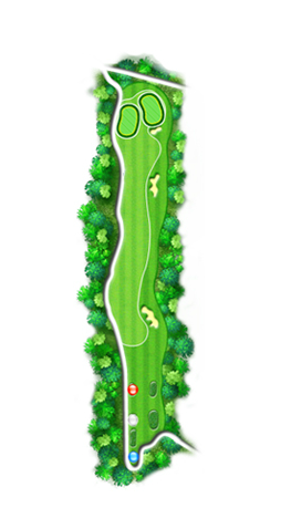 롱홀과 같은 미들홀 이므로 마음껏 티샷을 하고 싶은 욕심이 생기는 홀 입니다. 경쾌한 티샷 이었다면 세컨샷은 우드나 롱아이언을 선택하여 2온 시킬 수 있으나 우그린 사용시 그린앞 벙커와 우측 OB가 이를 거부하고 있으니 그린과 그린 사이를 공략하는 것이 좋습니다.
