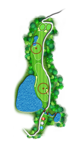 좌측에 대형 POND가 다소 신경쓰이나 티그라운드가 우측법면을 향하고 있다는 것을 참고하면 I.P지점이 넓기 때문에 부담없이 티샷을 구사할 수 있습니다.